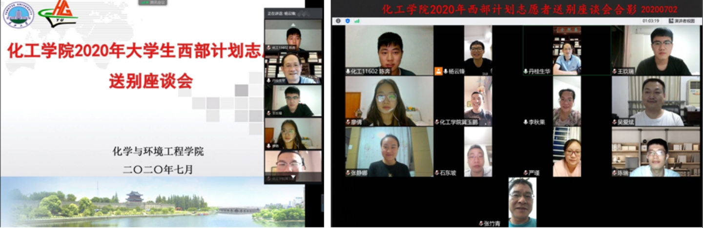 座谈会上,班级员工代表、教师代表先后发言送别3名志愿者。化学11602班的张静娜对3名同学入选西部计划表示祝福,希望他们担负起对国家、社会的责任与使命,做好志愿服务,同时照顾好自己,健康快乐地工作。班主任吴爱斌老师叮嘱3名同学抓住机会,以工作为乐,以奉献为荣。李秋果副书记嘱托志愿者们以高度使命感和责任感到祖国的西部建功立业,把工作当成人生最好的修行。