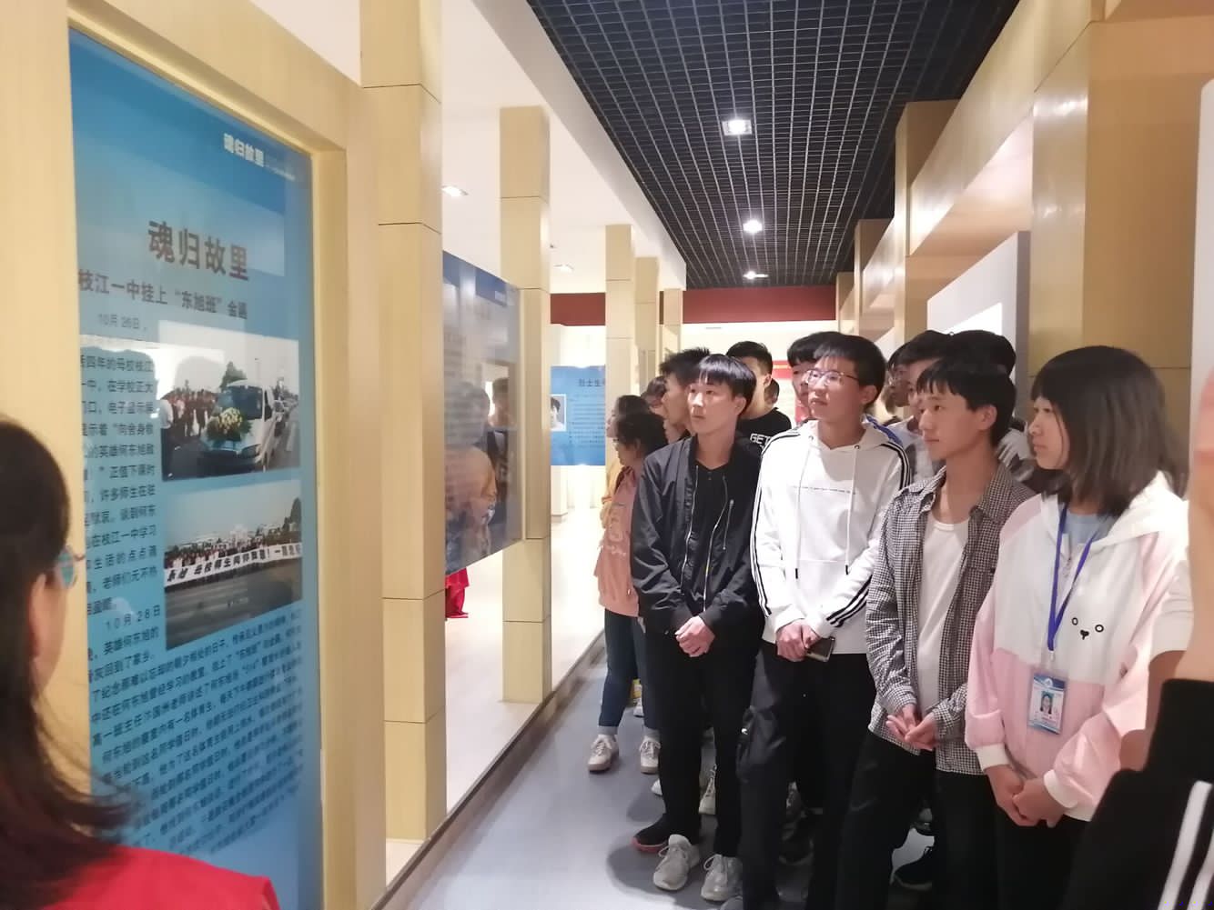 在纪念馆内,同学们怀着无比沉痛的心情聆听讲解员讲述“1024”英雄集体的生平,聆听他们的感人故事。一张张照片犹如时空穿梭机,带同学们回到那震撼难忘的一天。听着讲解员对英雄事件的讲述,看着馆内陈列的烈士遗物,同学们不禁湿润了眼眶,陷入了对人生价值的思考和感悟。整个缅怀英雄集体活动庄严、肃穆,在场的每一个人都受到了一次精神与心灵的洗礼。