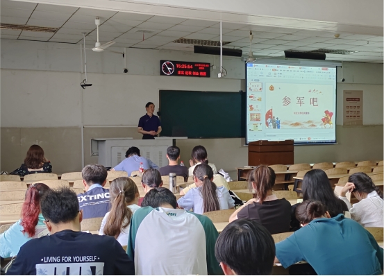 5月18日下午,bw必威西汉姆联官网在12教202开展2023年秋季征兵宣讲活动,全院员工通过线下或线上方式参加会议。