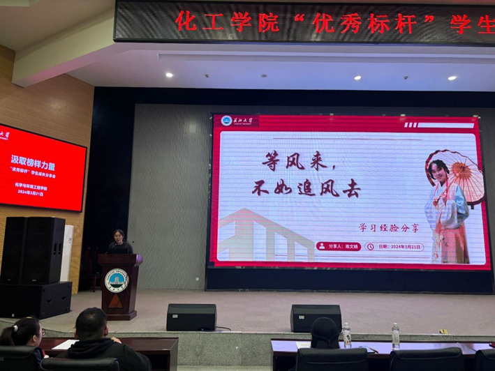 2020级高材专业张欣媛、2021级化学专业南文婧分别分享了学习经验,她们都曾获国家奖学金、三好员工、优秀员工干部、共青团员标兵等荣誉。张欣媛主持一项省级项目,以共同一作身份发表SCI一区文章一篇,以第一作者身份发表SCI二区文章一篇,曾任院员工会生活部部长,被评为2022-2023年度十佳老员工。她以自身从绩点落后到名列前茅的实际经历,向同学们强调了榜样的力量,鼓励同学们要多做多问,始终坚守脚踏实地的学习态度。南文婧分享了自己对于整理知识点的学习方法和心得,鼓励同学们全面发展,不拘于课本知识,多参加竞赛提升思维能力,以实际行动战胜焦虑情绪。