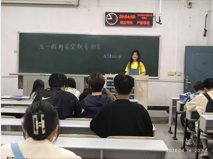 各班级组织同学们认真阅读学习《2024年“五一劳动节”假期安全提示》,并以国家安全、防溺水、防欺凌、防电诈等为主要内容向同学们强调生命安全、财产安全、网络安全、消防安全、交通安全、食品安全等注意事项,增强安全意识和法律意识,加强校园安全管理。班会同时要求同学们认真做好离校、返校的登记工作,严格落实请销假和返校制度,强调遇到紧急情况或危机情况要及时上报。