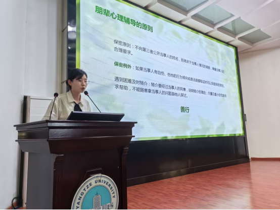 在培训活动环节,王娜老师通过案例分析和角色扮演活动,为心理骨干创造了在实际情境中练习应对心理问题方法的机会。活动中,心理骨干们积极参与、踊跃回答和演示,现场气氛十分活跃。