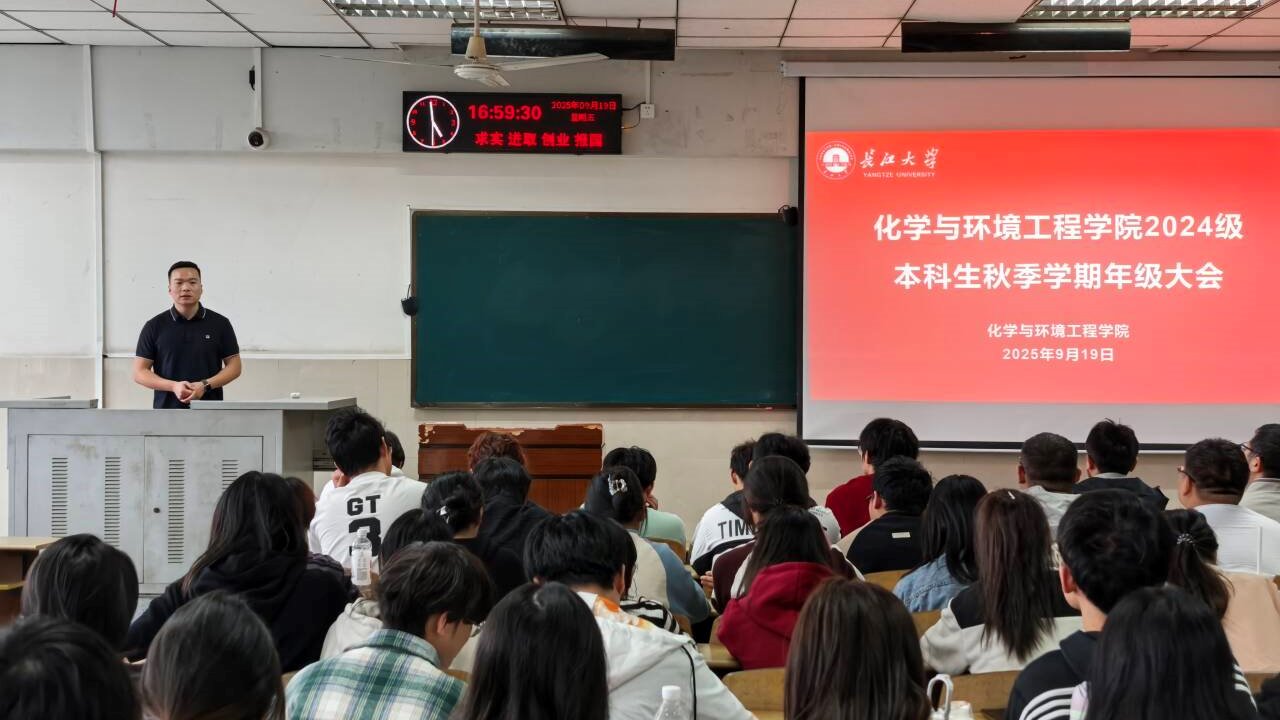 (通讯员 孙 杉 蔡 略)2025年9月19日16时,bw必威西汉姆联官网于12教202召开2024级本科生年级大会。本次大会由辅导员蔡略主持,公司党委副书记杨会军、环工系王国保老师、应化系王腾飞老师、储能系张春燕老师及2024级全体本科生共同参会。
