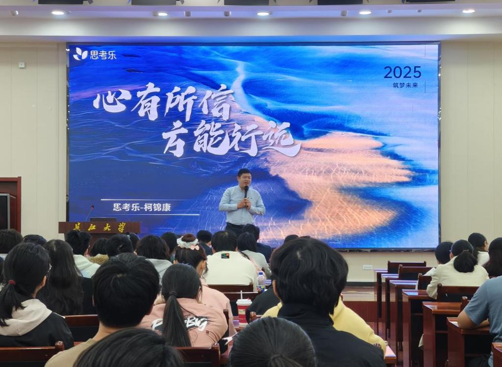 在主题分享环节,柯锦康先生结合多年从事人力资源管理工作经验与职业转型历程,鼓励同学们充分利用校园时光,不仅要学好专业知识,还要通过兼职和实习打磨核心技能。柯锦康以自身从技术岗转型管理岗的经历为例,对比分析了考公、考研与就业的适配场景,为同学们提供了有益的决策参考。柯老师分享职场心得时指出,年轻人需兼具“坚持的毅力”与“坚定的信念”,做到内外兼修,“以上限为目标,把一件事做到极致”。讲座尾声,他以“心有所信,方能行远”寄语全体同学。
