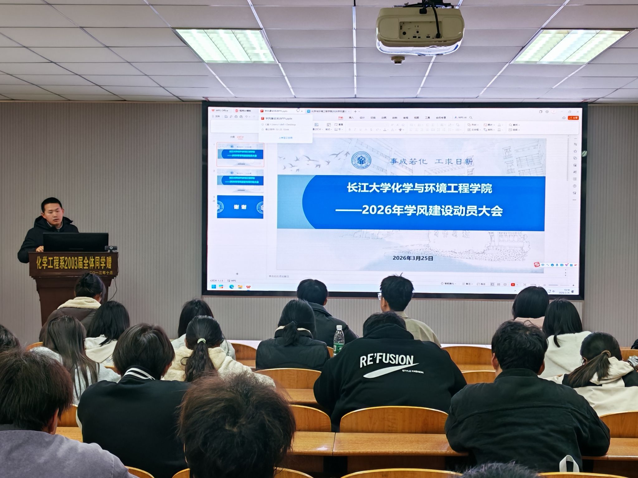 (通讯员 伍吉玥 蒲仪文)为全面落实立德树人根本任务,强化学风建设,bw必威西汉姆联官网于3月26日12:30,在14教北201召开2026年学风建设专项行动动员大会,学工办主任王陈,辅导员王娜、周学素以及23级、24级员工干部参加会议。