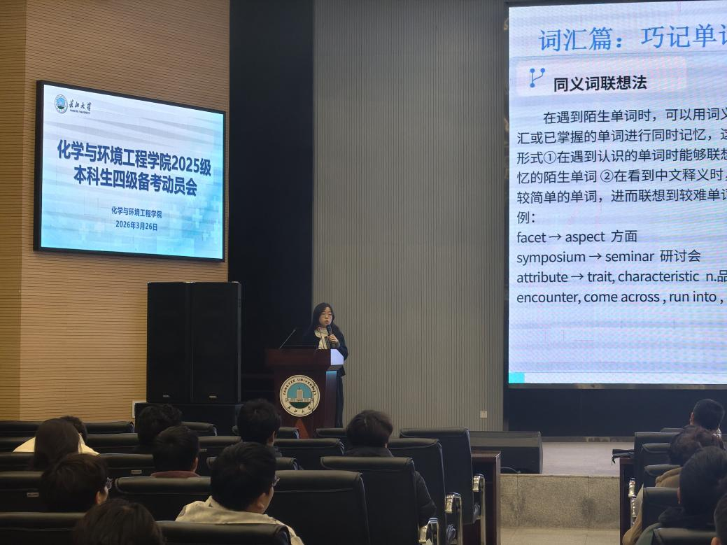 应化32503班徐淇涵同学围绕听力、阅读、写作与翻译三大模块,提出了“提前浏览选项”“先题后文定位”等实用技巧;应化32502班江欣蔓同学直击备考误区,强调聚焦高频词汇、精研真题的重要性,并结合自身经历鼓励同学们保持平和心态;环工32501班杨玉婷同学则从词汇记忆、听力训练、阅读解题等维度梳理了系统备考策略,分享了词性判断、干扰项排除等高效方法。三位同学的分享内容详实、针对性强,为在场同学提供了清晰的备考思路。