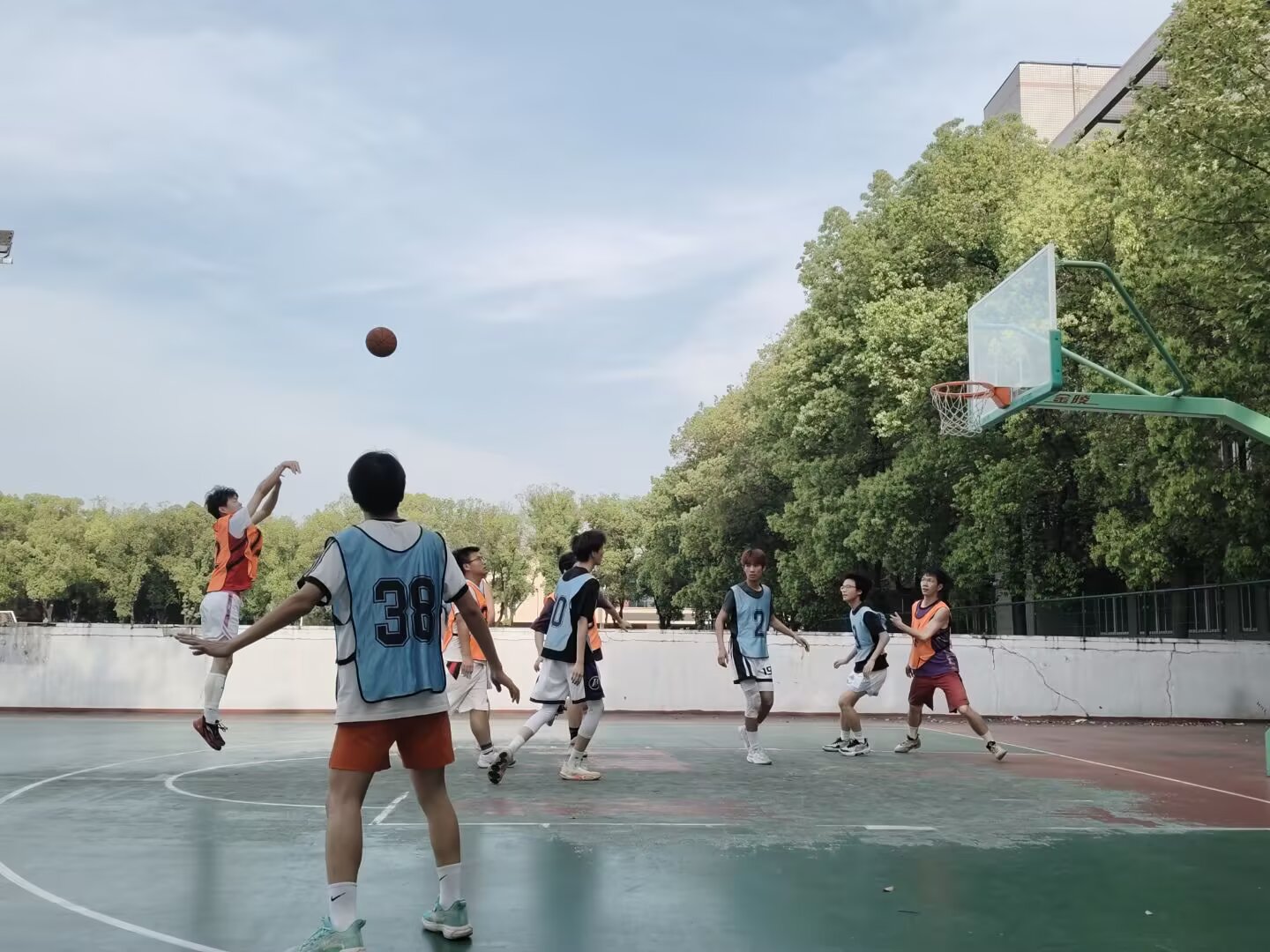 本届篮球赛虽受近期多变天气影响,赛程因降雨几度调整延误,但丝毫未削减同学们的参赛热情与观赛期待,全体球员始终坚守热爱,静待巅峰对决时刻。决赛当日,球场之上气氛热烈,助威声、欢呼声、掌声此起彼伏,每一位球员都以饱满的状态奔赴赛场,全力以赴奔赴胜利。
