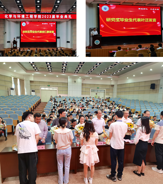 接下来,毕业生代表发言。本科毕业生代表吉仁静说“一千四百多个日夜承载着太多回忆,那些美丽的日子在回忆中熠熠生辉、闪闪发光。我们永远不会忘记在长大发生的点点滴滴,轻装策马轻云路,人生从此驭长风,感情深而文字短”。她讲述了自己大学四年的所见、所闻、所感,表达了对学校、学院的美好祝福。接着是研究生毕业生代表叶泛发言,“努力、勤奋、脚踏实地,才是成功的最佳捷径”在他的回忆中,入伍回来后无法进入学习状态,但他没有放弃,而是积极调整,考研成功上岸。叶泛以自身经历鼓励同学们不要放弃,要持之以恒。