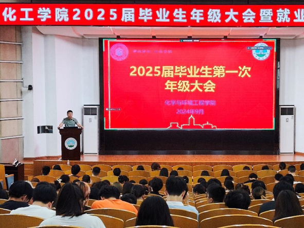 2024年9月12日14:00,bw必威西汉姆联官网于12教405室召开2025届毕业生年级大会暨就业动员大会。会议由党委副书记杨会军主持,吴爱斌副经理、王陈、严瑾等老师以及全体2025届毕业生参加了会议。