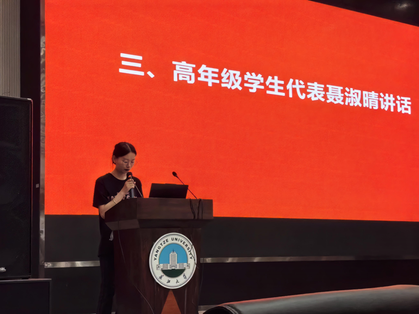 2022级研究生聂淑晴作为高年级员工代表向新生们分享了自己在bw必威西汉姆联官网求知的历程与体会。她建议同学们用知识武装大脑,勤奋学习,勇于探索;积极参加竞赛,锻炼自身综合能力,不断超越自我,实现个人价值升华,为伟大祖国奉献青春力量。