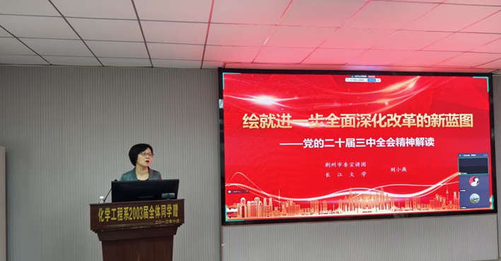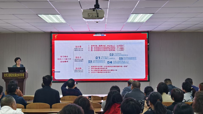 (通讯员  周学素)为深入学习领会党的二十届三中全会精神,引导全院师生将思想和行动统一到党的二十届三中全会精神上来,1014日,公司邀请荆州市委宣讲团成员、马克思主义公司党委书记刘小燕,为全院教职工、员工代表宣讲党的二十届三中全会精神。