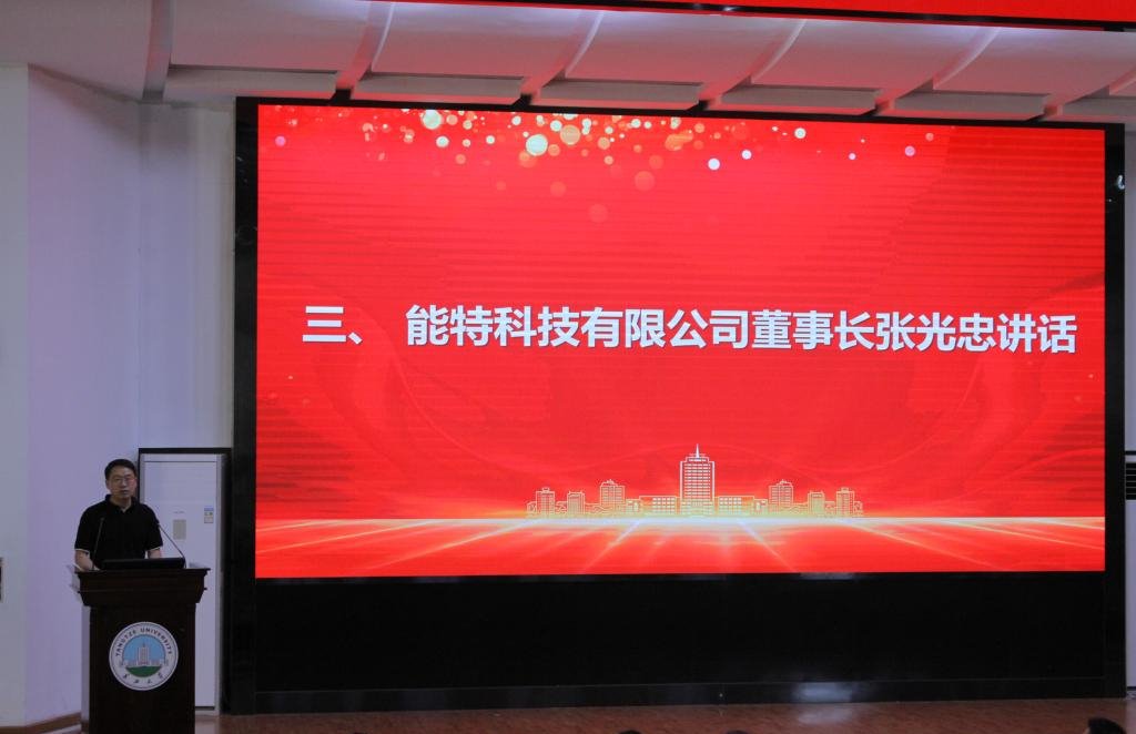行业之声环节,能特科技董事长张光忠为毕业生致辞。他以“产业报国”为核心,分享了公司创业历程与行业见解,诠释了化工强国的使命担当,为毕业生们的职业生涯上了珍贵的一课。