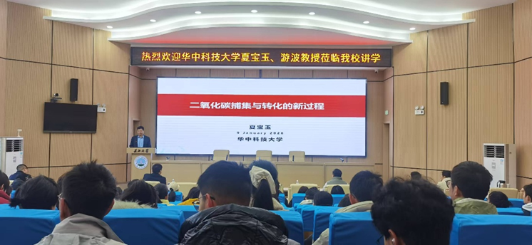 2026年1月9日上午,华中科技大学夏宝玉、游波两位教授在东校区11教学术报告厅为师生带来了两场聚焦CO2资源化利用的高水平学术报告。本次报告会由学院赖璐经理主持,肖围副经理、谷惠文副经理、部分青年教师、学院研究生及储能科学与工程专业本科生参加了此次活动。