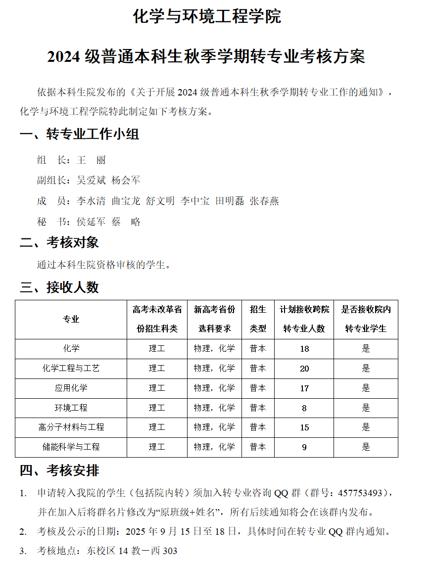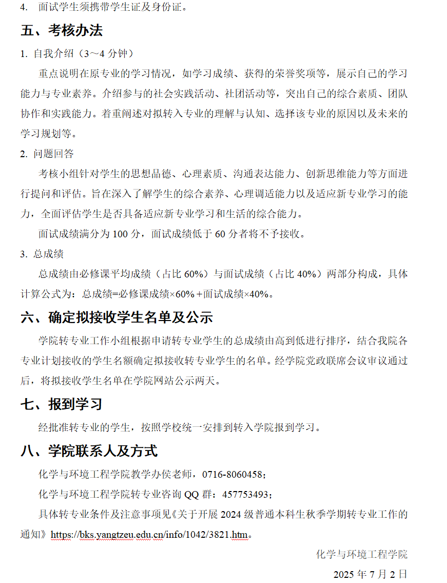 bw必威西汉姆联官网2024级普通本科生秋季学期转专业考核方案
