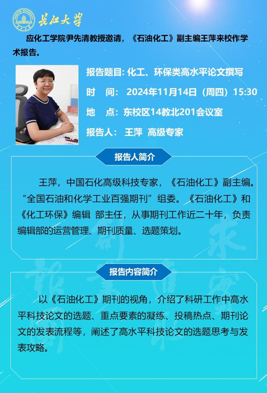 长江化工讲坛:化工、环保类高水平论文撰写