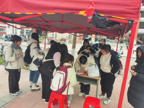 活动当天,东校区13教、西校区7教楼前人头攒动,气氛热烈。学院环境保护协会的工作人员早早便在现场设置了废旧电池回收点,工作人员们准备了种子纸、明信片、绿植等小礼品,积极鼓励同学们参与活动。随着活动深入进行,越来越多的同学加入到回收废旧电池的行列中来,他们纷纷将积累的废旧电池投放到回收箱中,以实际行动支持环保事业,展现了长大学子对环保事业的热情与担当。